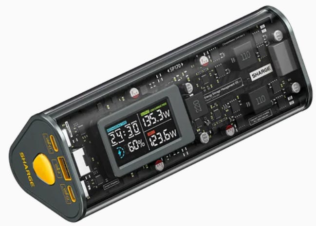 Scharge is a company that does interesting design ideas. If it were Apple, the tech world would be swooning; but it’s not, so the world isn’t. For instance, it has see-thru power banks, of which I bought one, but then was disappointed to find my laptop wouldn’t charge from it. Also, it’s too heavy to haul around all day long in a backpack. Still, it looks cool.